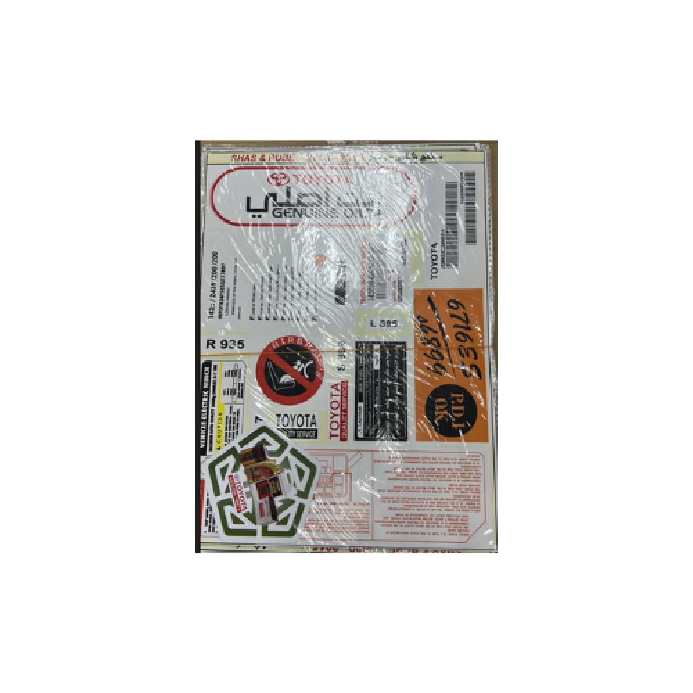يحتوي على مجموعة الملصقات التحذيرية والتوضيحية الأصلية المستخدمة داخل حجرة المحرك وأجزاء المركبة المختلفة. مناسب للاستبدال أو استعادة مظهر الوكالة عند التجديد.